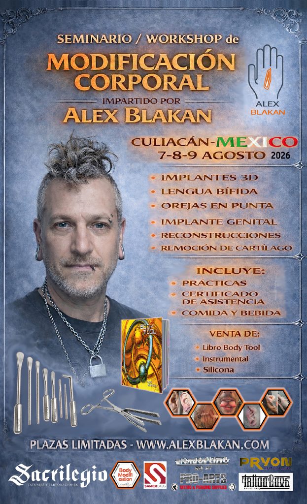 Los seminarios de modificación corporal abordan técnicas específicas del body modification, profundizando en la preparación del tejido, el uso adecuado de herramientas, la planificación del procedimiento y la toma de decisiones responsables, siempre desde una perspectiva profesional, ética y segura.