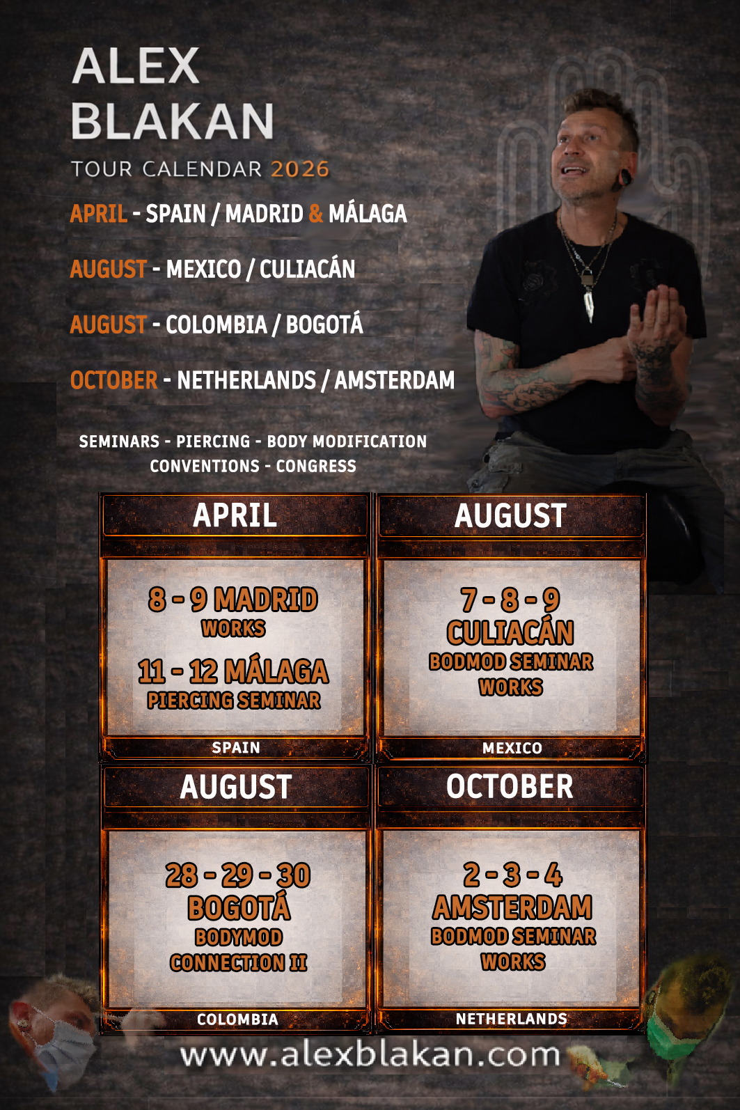 Un recorrido internacional dedicado a la perforación corporal avanzada y la modificación corporal, orientado a profesionales que buscan perfeccionar su técnica, reforzar criterios de bioseguridad y continuar su evolución dentro del sector.